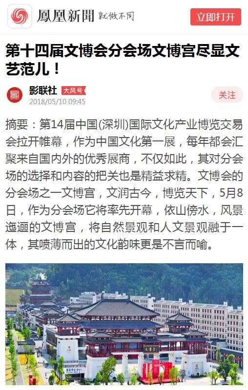本届文博会联合了深圳影联社在腾讯视频、今日头条、凤凰网、百度百家、优酷等20余家新闻媒体对参展单位、展示内容等进行了全方位、深层次、多角度报道,相关展览专题及图文链接通过网络直播、在线访谈等形式及时报道展会盛况。