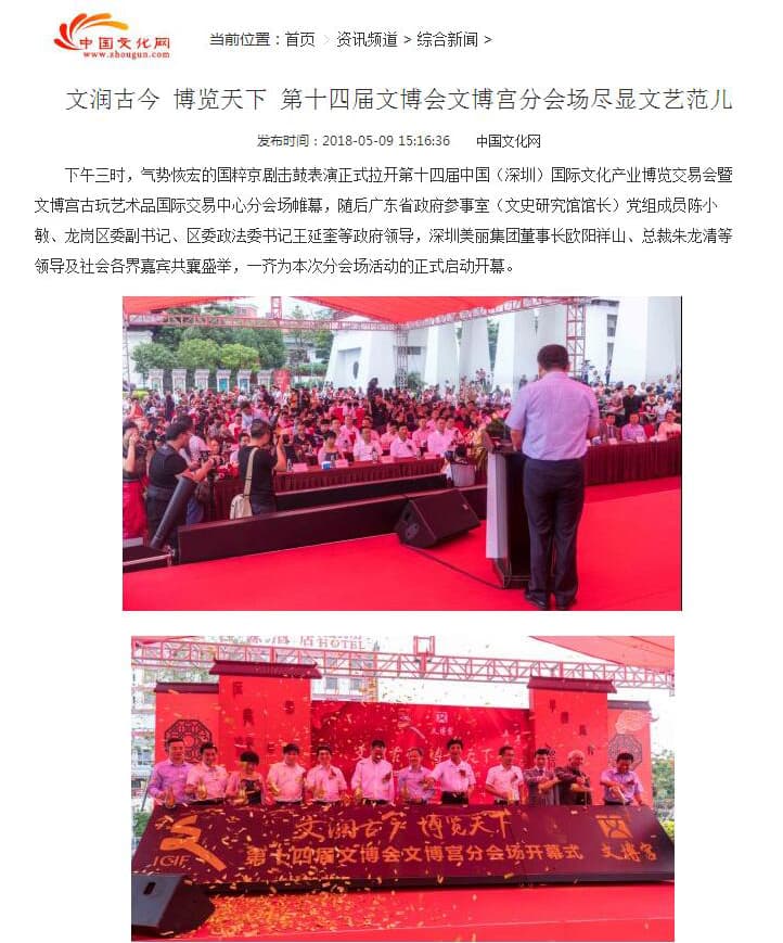 作为第十四届中国(深圳)国际文化产业博览交易会分会场的文博宫,秉承着“文润古今,博览天下”的主题,构建了一个现代化的文化交流平台。此次文博会邀请了来自海内外最优秀的艺术家,以水墨、油画、摄影等不同的艺术形式呈现了全球化语境中不同地域的当代艺术的发展趋势。展览吸引了国内外众多重要媒体前来采访与报道,以下为部分媒体报道摘录: