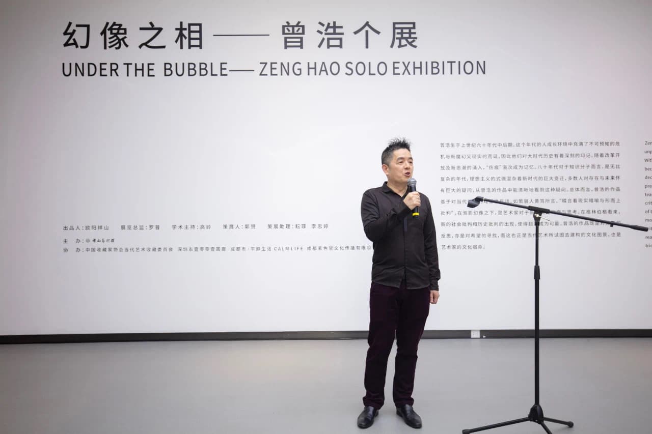 3月20日下午,由祥山艺术馆主办,中国收藏家协会当代艺术收藏委员会、深圳市壹零零壹画廊、成都市·平静生活 CALM LIFE、成都素色堂文化传播有限公司协办的“幻像之相”——曾浩个展在祥山艺术馆开幕。此次展览共展出了艺术家曾浩新近创作的30余件作品,当中涵盖油画、综合材料作品、大型装置作品,呈现了他近年在艺术领域的探索。